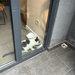 「ごはんはわかっているんだにゃ!中に一緒に入りたいにゃ!」とドアの前でスタンバイ↓
